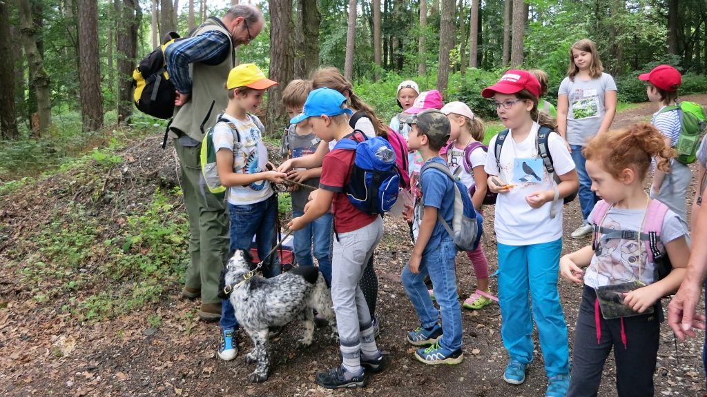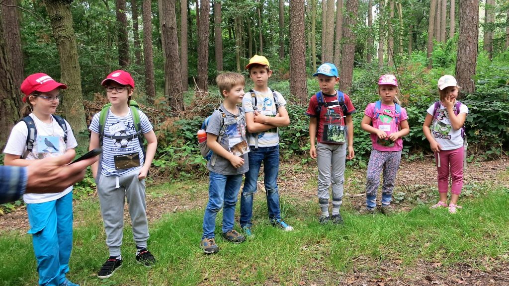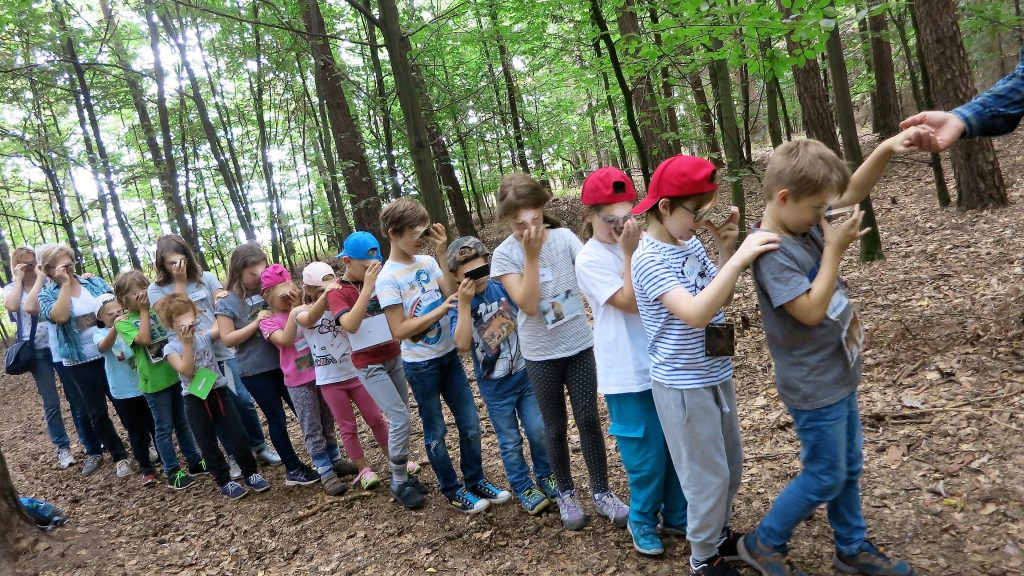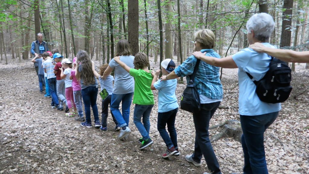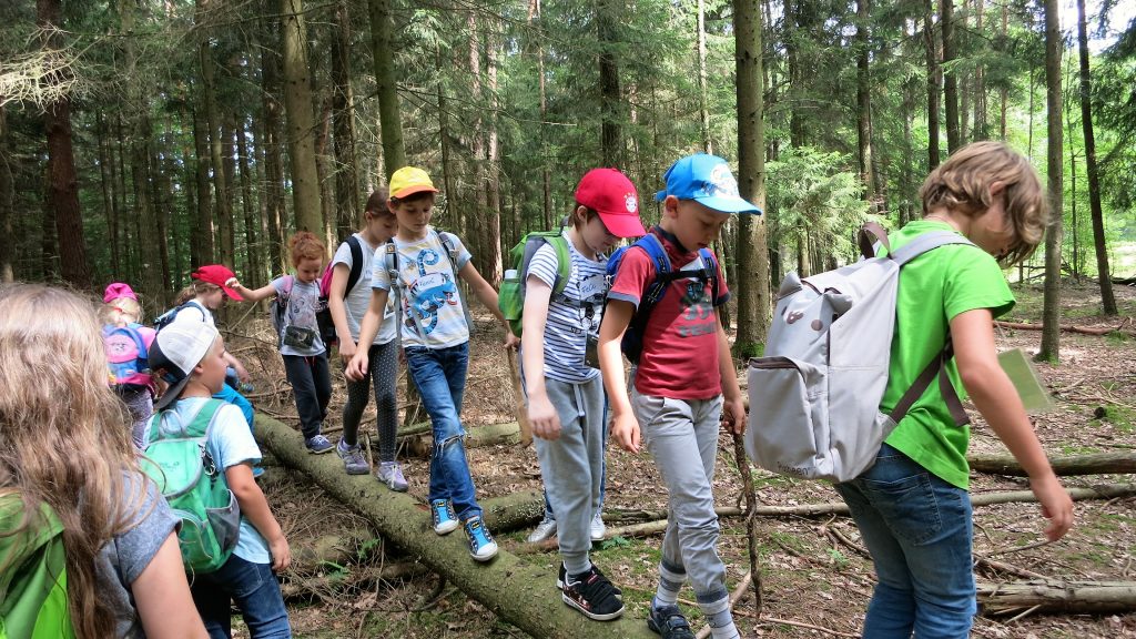 Mit lustigen Spielen, Lauschen mit verbundenen Augen, Balancieren über liegende Baumstämme, Wiedererkennen von vorher blind ertasteten Bäumen, Aufspüren von Borkenkäfern, ging die Zeit wie im Fluge vorbei.