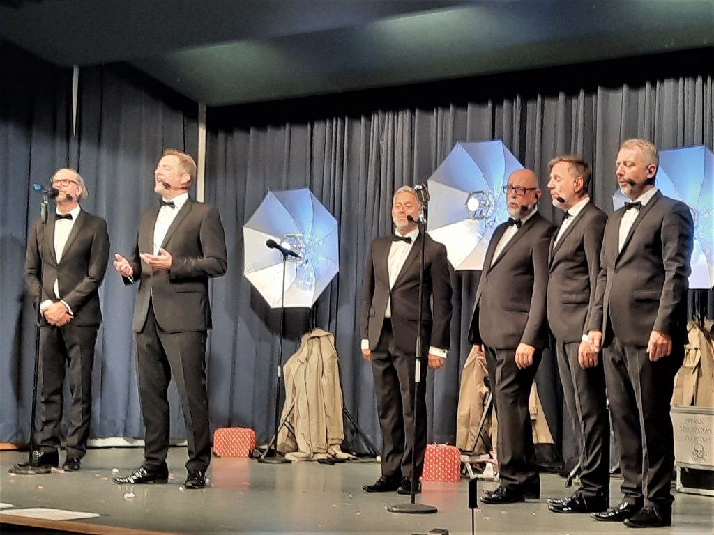 In ihrer Show „Goldsinger“ begeisterten die sechs begnadeten Sänger das Publikum. Das Programm „Goldsinger“ ist angelehnt an den James-Bond-Film „Goldfinger“. Die Parodie auf Geheimdienste, Agenten und Spione gepaart mit Klamauk und Komik brachten das Publikum zum Lachen, Klatschen und Mitsingen.