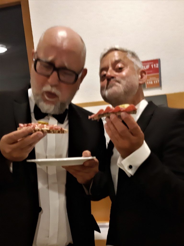 Verwöhnt wurden die Zuschauer und die Musiker mit vielfältig belegten bunten Schnittchen und Brezen, sowie verschiedenen gut gekühlten Getränken aller Art. Besonders genossen die Gäste den Spezial-Aperol Sprizz, frisch gemixt mit viel erfrischendem Eis von unserer Önologin Ulla Schwarte.