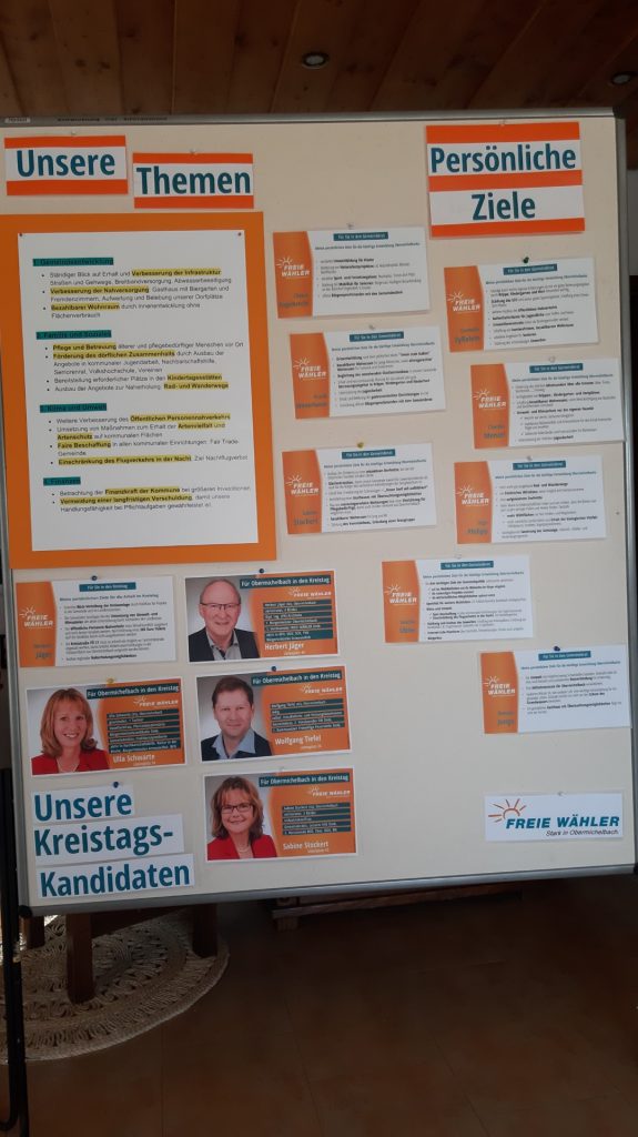 In den drei Otsteilen Obermichelbach, untermichelbach und Rothenberg stellten sich in einem Wahlstand die Kandidaten den Fragen der interessierten Bürger. Auf Pinwänden wurden die Kandidaten in einem Steckbrief und die Ziele vorgestellt . Dazu gab es Bratwürste und Getränke.