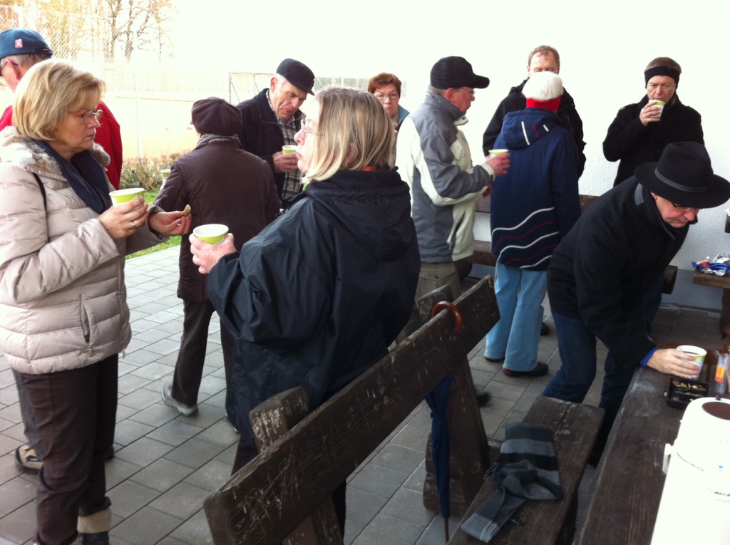 Wie jährlich am Jahresanfang trafen sich Obermichelbacher Bürger zum Jahresanfang zu einem gemütlichen Winterspaziergang. Bürgermeister Jäger begrüßte die Teilnehmer am neuen Dorfplatz. Nach einer kurzen Besichtigung des Dorfplatzes ging es über gefrorene Winterwege Richtung Sportplatz. Wie immer gut vorbereitet wartete heißer Glühwein, Stollen und Plätzchen auf die Teilnehmer. Gewärmt, gestärkt und nach netten Gesprächen ging es zurück zum Dorfplatz. Der Bürgermeister erläuterte die weiteren Bauvorhaben am Dorfplatz und rund um den Friedhof. Der gemütliche Ausklang bei Toni rundete einen gemütlichen Nachmittag mit etwas Bewegung an frischer Luft ab.