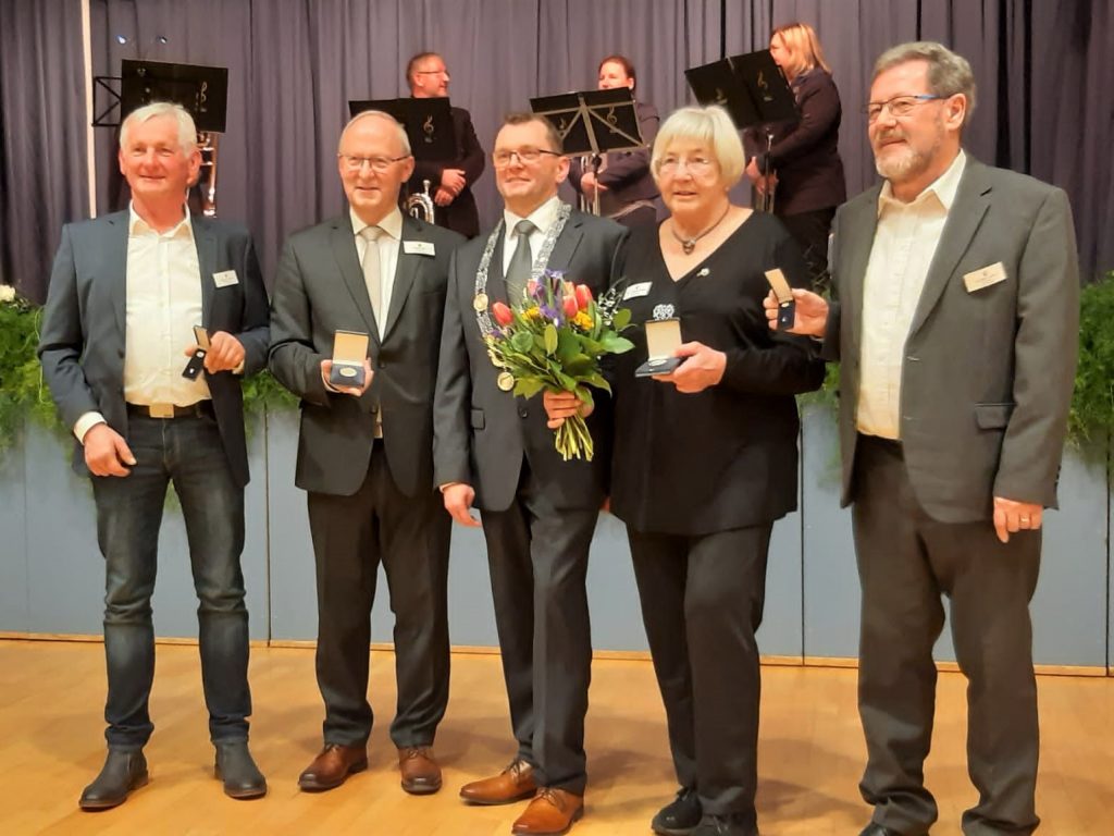 Jürgen Schenke und Günther Lehner erhielten für ihren Einsatz die Ehrennadel verliehen, Ingrid Wendler-Aufrecht und Altbürgermeister Herbert Jäger wurden mit der Bürgermedaille der Gemeinde Obermichelbach ausgezeichnet.