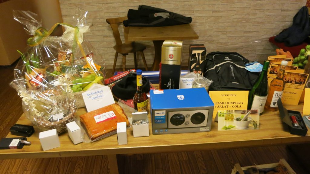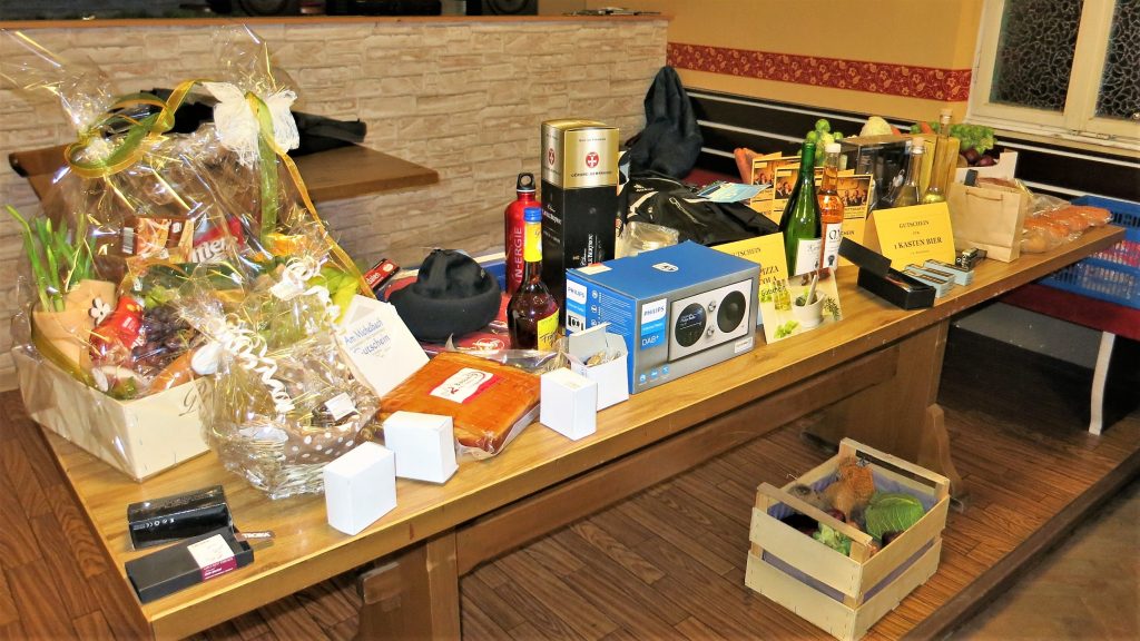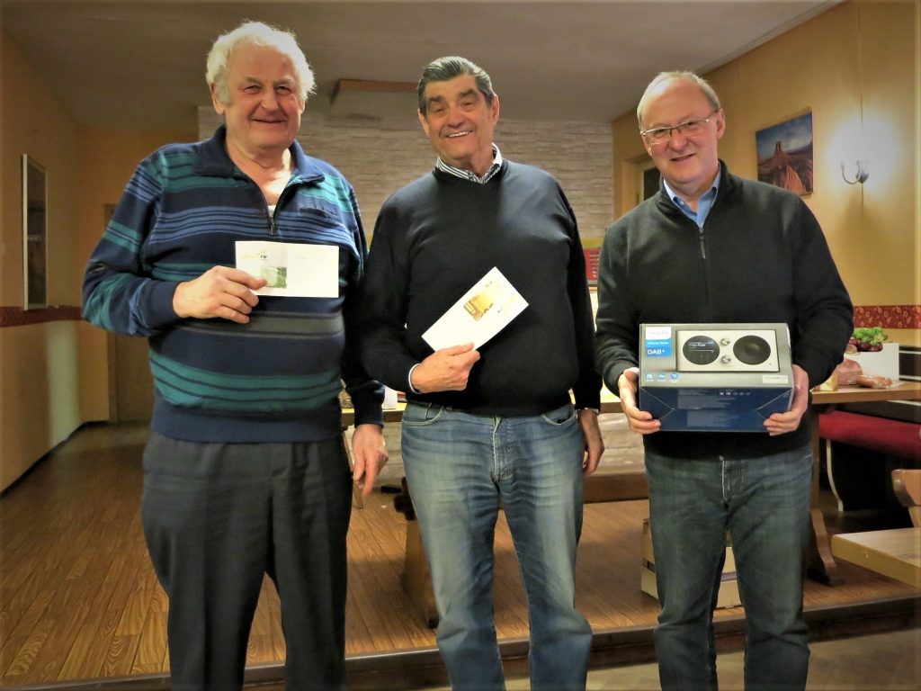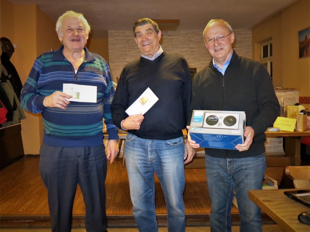 Kein Teilnehmer ging ohne einen Preis nach Hause. Den ersten Preis (100 Euro) gewann Franz Hartstock (585 Punkte), der zweite Sieger Herbert Jäger (550 Punkte) nahm ein Digitalradio mit, und der dritte Sieger Manfred Schmidt (530 Punkte) entschied sich für 50 Euro in bar. Darüber hinaus gab es einen Geschenkekorb, „Steigla“ mit frischem Gemüse, Schinken und Wurstwaren, alkoholische Getränke und diverse Gutscheine. Den Ring Stadtwurst für den vorletzten Platz erhielt die einzige weibliche Teilnehmerin Edeltraud Ritzke, mit immerhin 295 Punkten