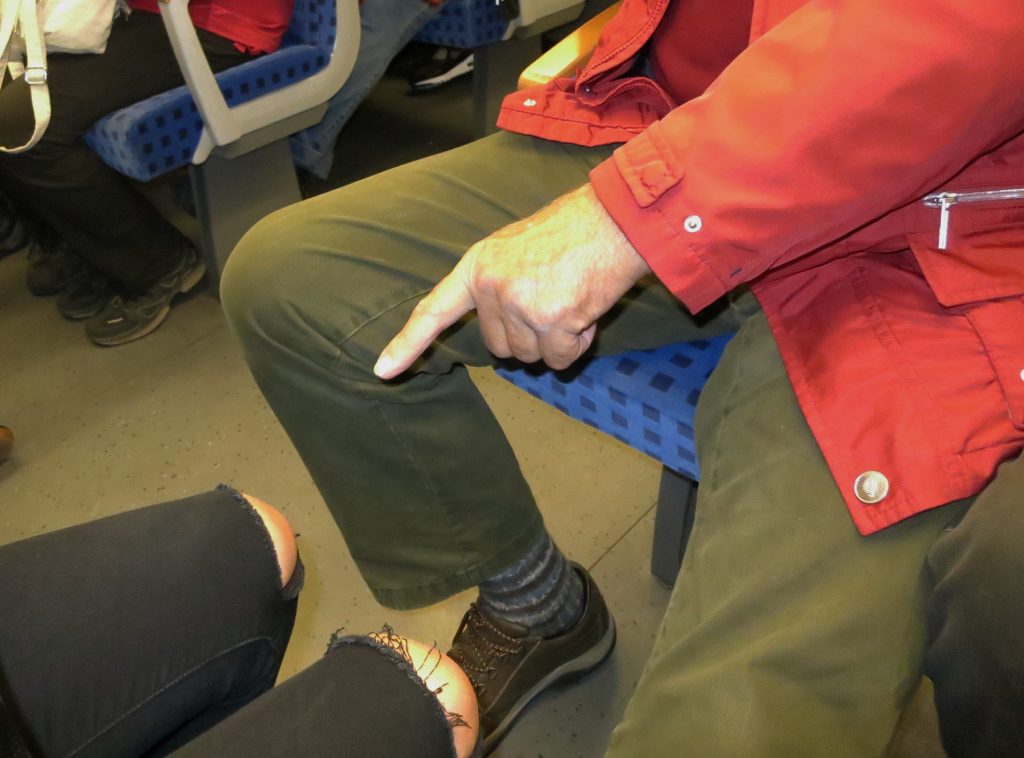 Auf der Heimfahrt im Zug erreichte die Stimmung bei einer Flasche Hüttenheimer Bacchus, die sich bis dahin im Rucksack versteckt hatte, ihren Höhepunkt. Dabei gab es heiße Diskussionen mit einer Schönheit aus Sulzfeld, ob man zerissene Hosen besser näht oder tackert.