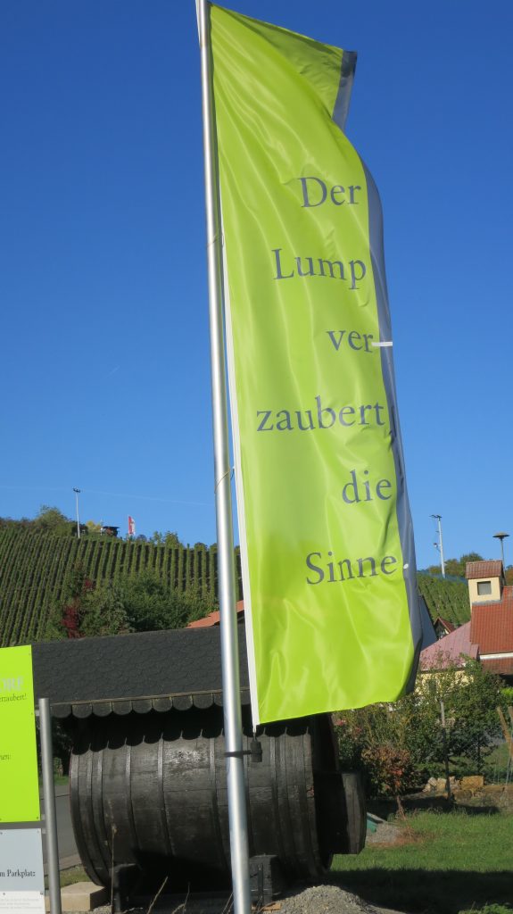 Der Escherndorfer Lump ist eine der heißesten Weinlagen Frankens und schon Goethe rühmte die „Egalität“ des Weines und bestellte damals ein „Zweieimerfaß von besagtem Escherndorfer 1798er Wein“. Gerdi Jäger erklärte uns die Bedeutung von „Lump“: die Flurstücke waren früher so zerrissen wie ein „Lumpen“.