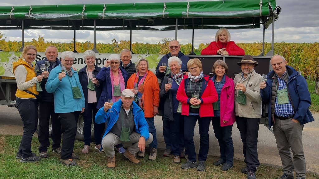 Die Freien Wähler Obermichelbach hatten im letzten Jahr ihr 40-jähriges Jubiläum. Eine Jubiläumsfeier konnte damals aus verschiedenen Gründen nicht stattfinden. Deshalb unternahmen wir jetzt im Herbst eine Jubiläums-Weinwanderung. Damit auch Knie-, Hüft- und Fußkranke teilnehmen konnten, hatten wir uns etwas Besonderes einfallen lassen: Eine romantische Planwagenfahrt über die Weininsel. Sie fand am 8. Oktober 2022 statt.